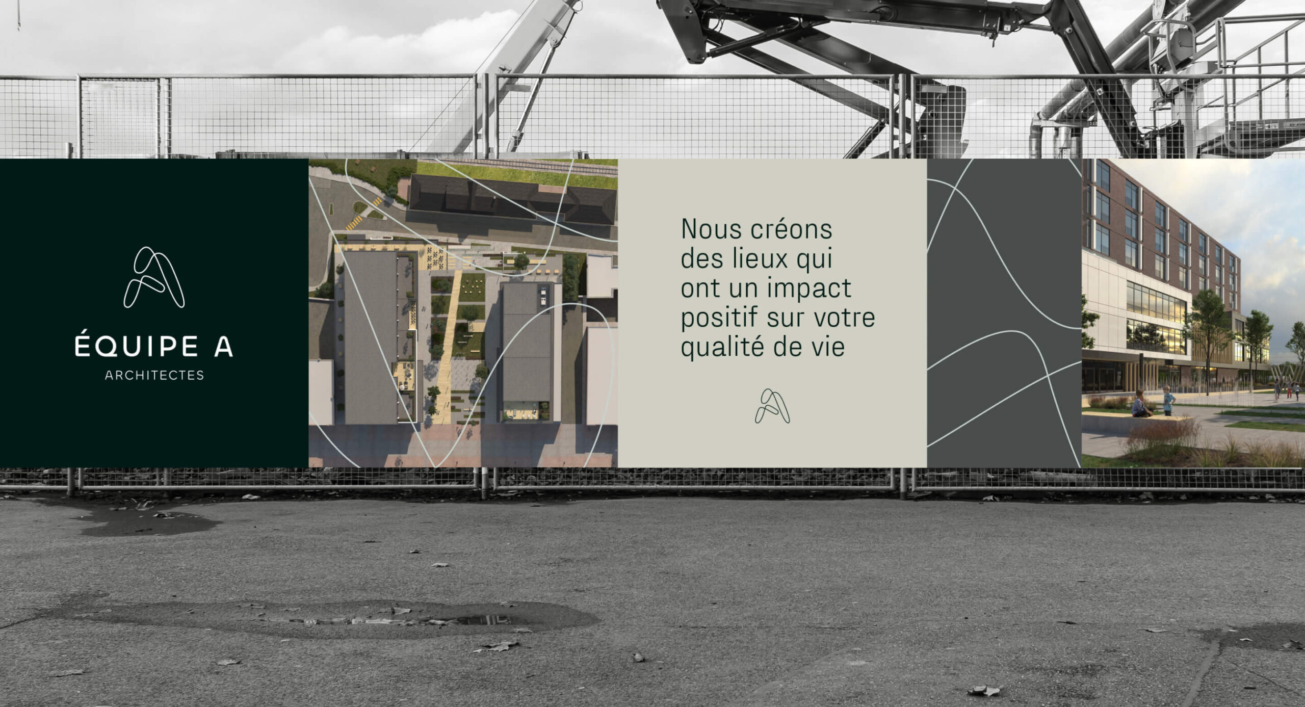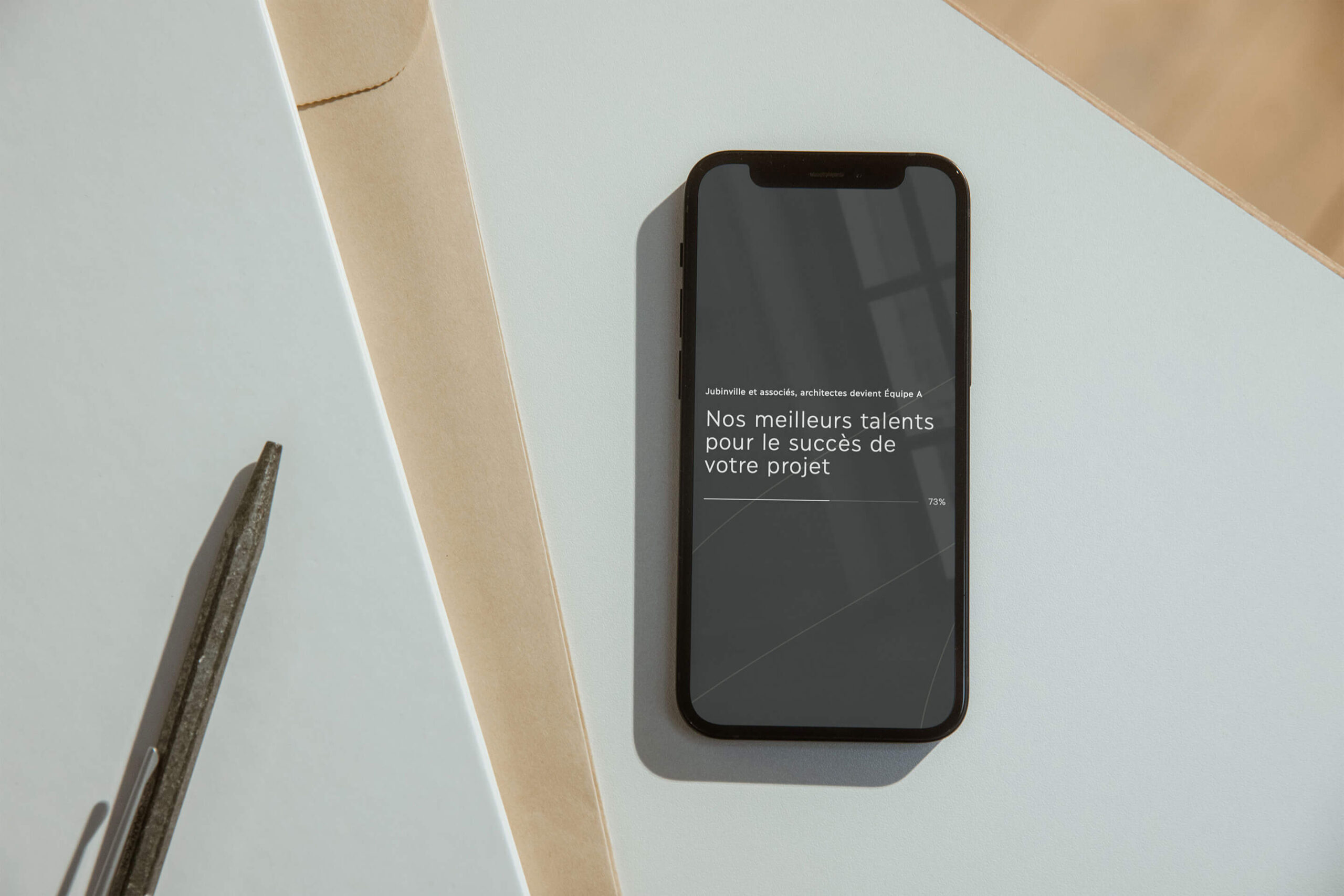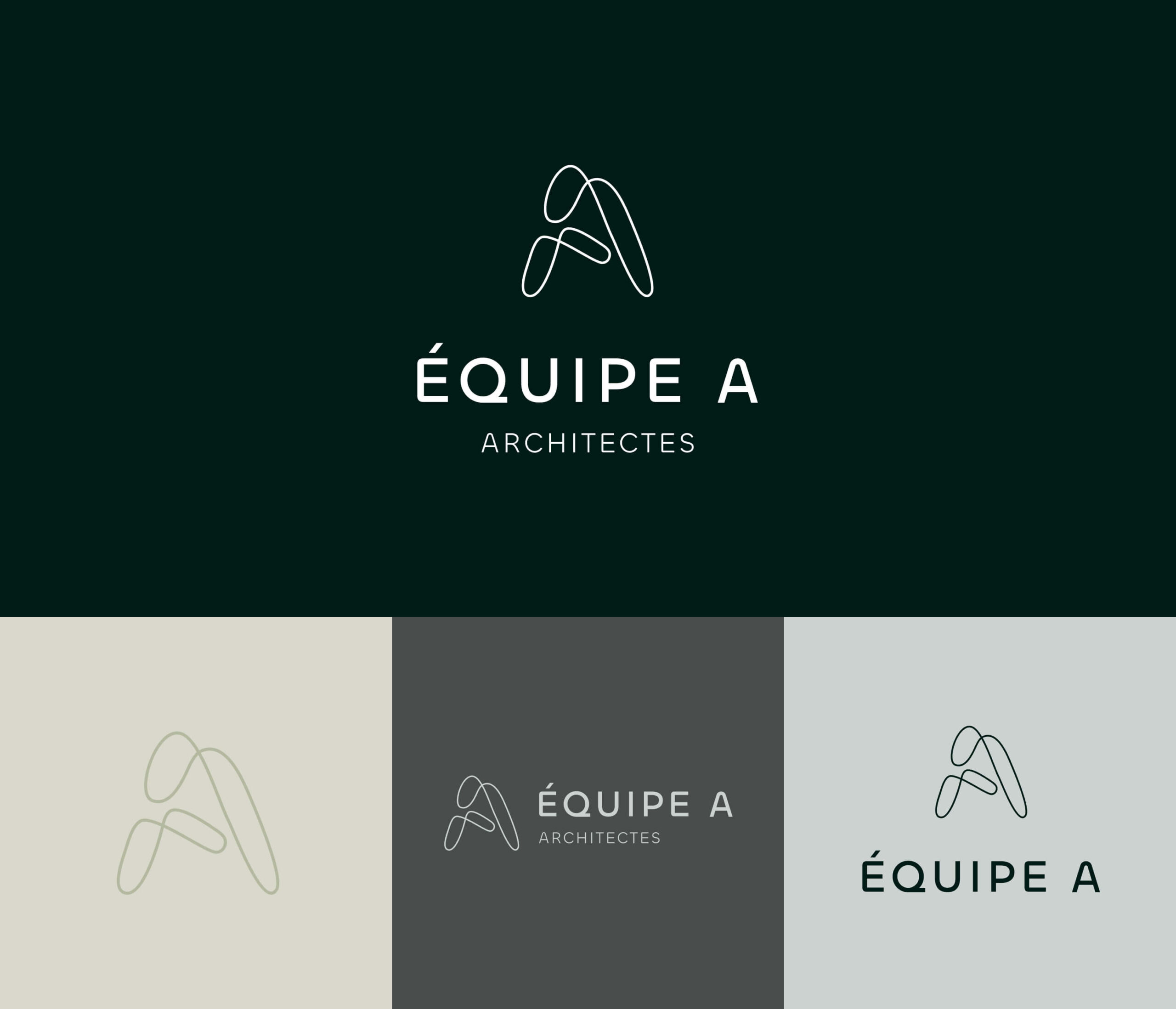 The goal of this project was to create a new brand identity for the architectural firm Jubinville & Associés Architectes, renamed Équipe A. The new branding, developed following a brand strategy orchestrated by our team, is intended to be a timeless and refined approach, putting forward a symbol that represents the effervescence of ideas, diversity and collaboration. The resulting identity platform moves away from the straight line and structure, advocating an organic and malleable line instead.