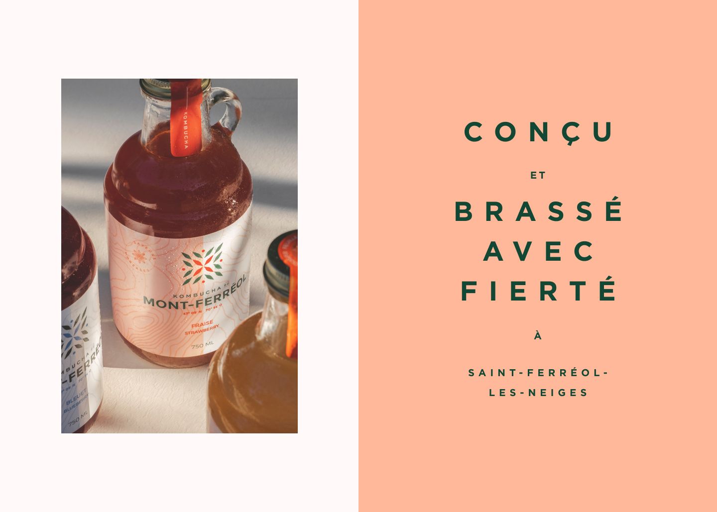 Kombucha du Mont-Ferréol called upon Beauvoir to create a distinctive brand identity and all related communication tools. Brand positioning was performed with the goal of establishing the product as Quebec’s preferred kombucha.