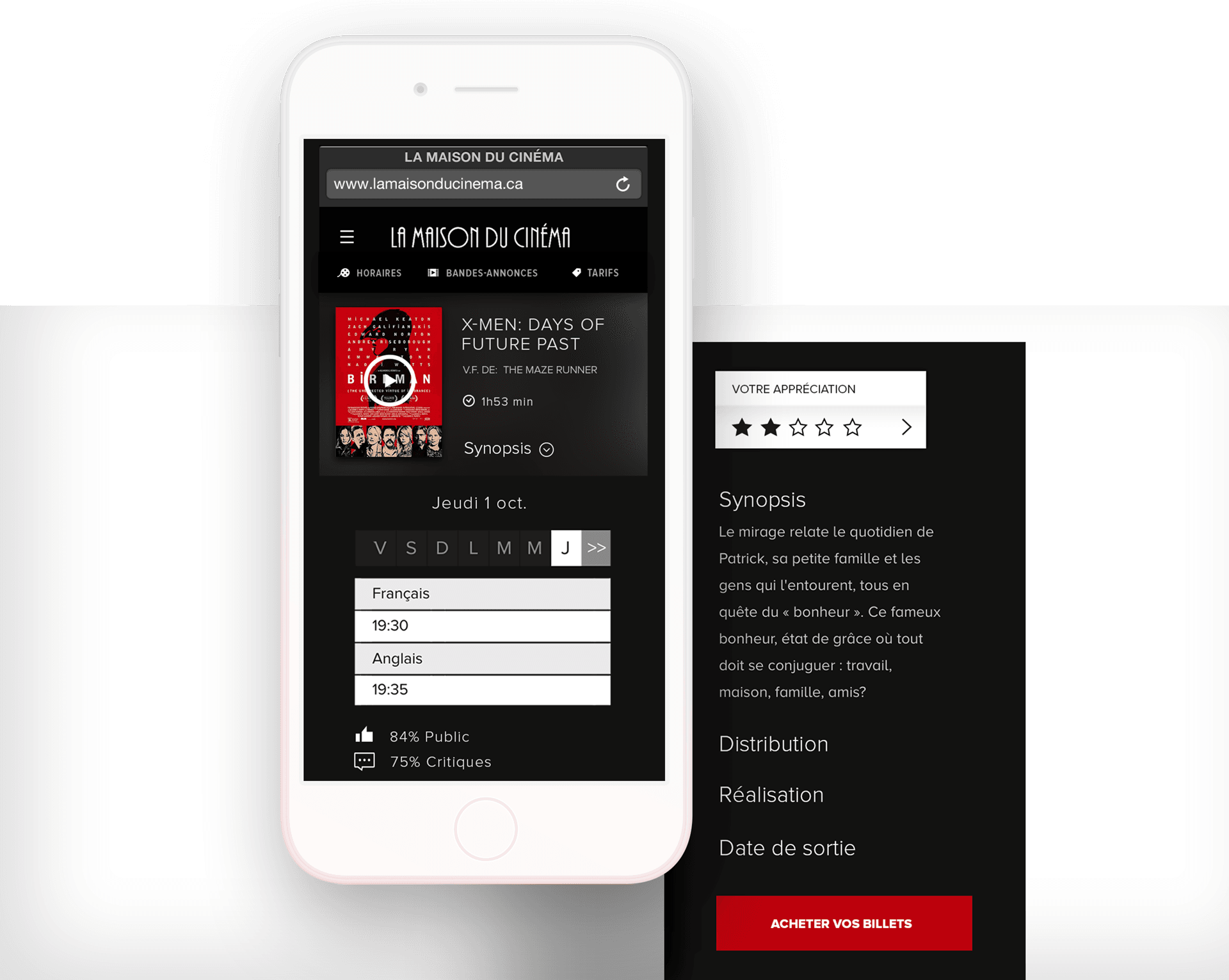 The objective of La Maison du Cinéma was to offer more than just a regular online schedule to its clientele. They wished to completely review their website’s user experience and bring to light the film industry’s rich content from around the world.