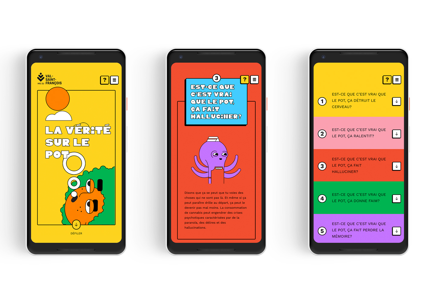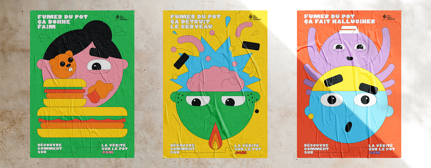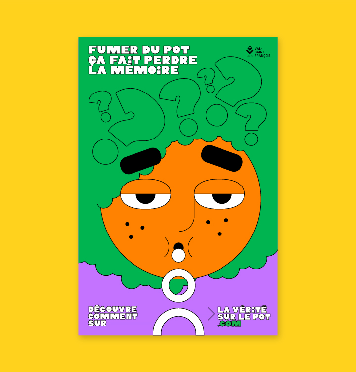 Developed for the MRC du Val-Saint-Francois, this campaign “The truth about pot” (La vérité sur le pot) aims to raise awareness among young people aged 12 to 17 about the long-term effects of cannabis.